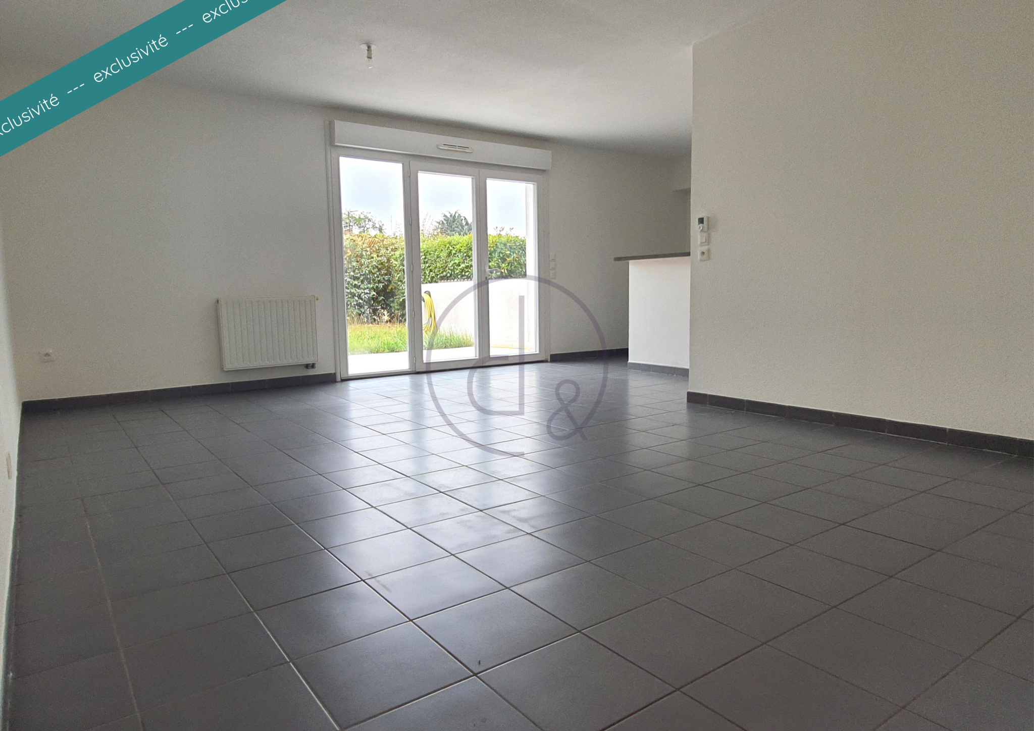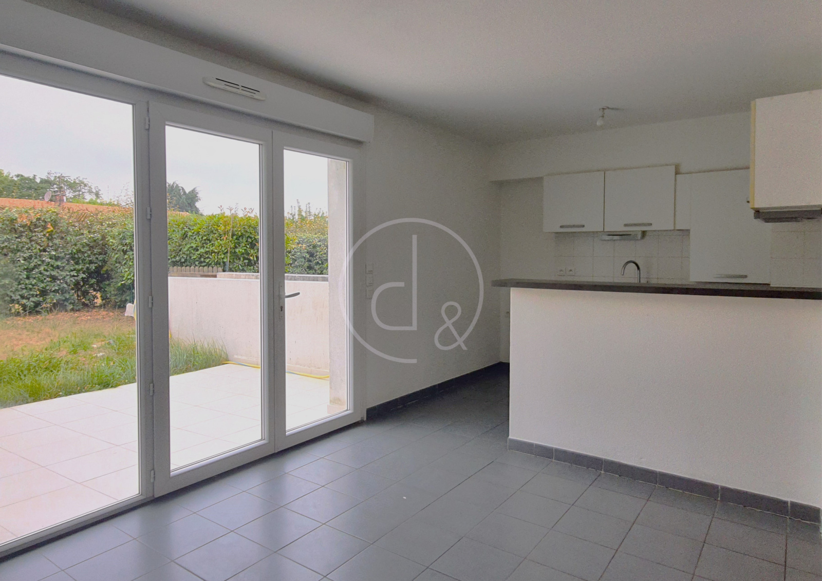 - 1 grand salon/séjour de 36 m² avec baies vitrées et une cuisine entièrement équipée (meubles bas, meubles hauts, plaque 4 feux, hotte)